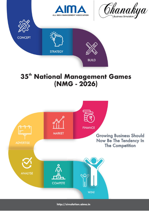 AIMA's 35th National Management Game (NMG) 2026, flagship simulation-based competition, is designed to provide a dynamic and immersive learning experience to participants. NMG is a unique platform for Corporate Managers to experience the thrill of Managing Business in competitive mode. It serves as a powerful platform to enhance critical managerial competencies such as risk-taking, decision-making, and team management, ultimately fostering a strong sense of ownership and leadership among participants.
