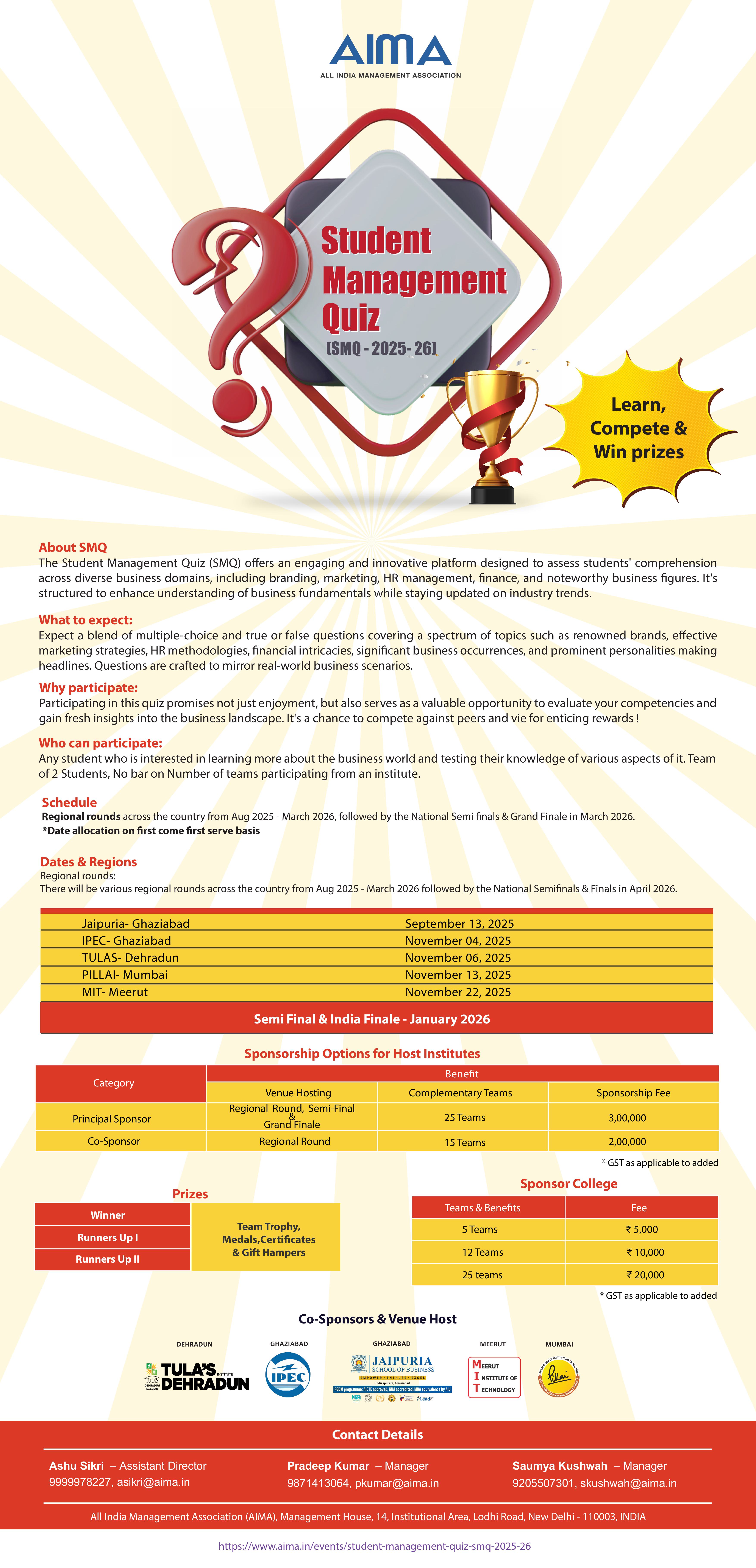 | Principal Sponsor | Regional Round, Semi- Final & National Final | 25 Teams | ₹ 3,00,000 |